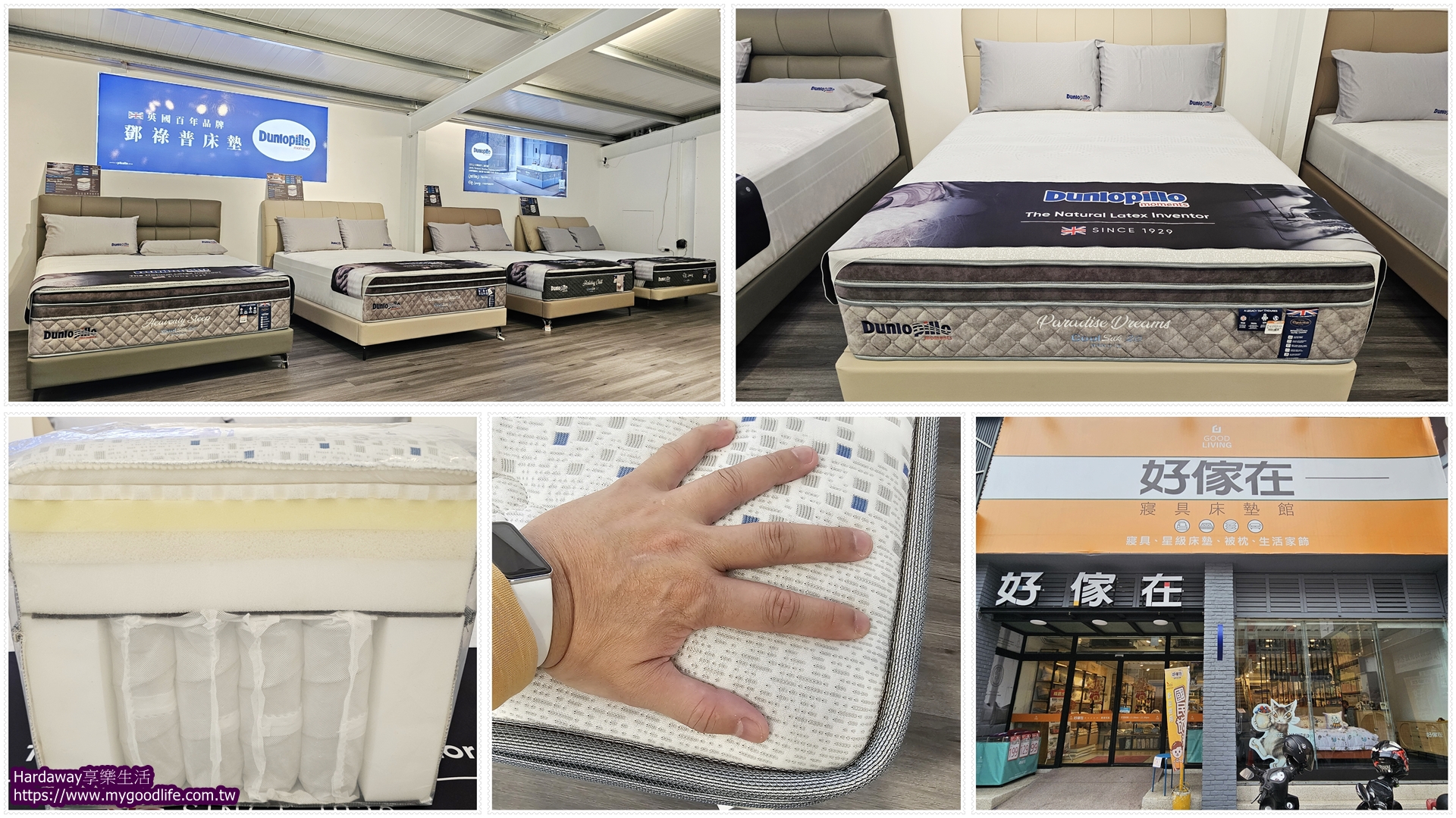 想找台中一站式家居店選購舒適好睡床墊的大大看過來,自己不久前陪朋友去好傢在寢具床墊館向上店試躺創立接近百年,來自英國的鄧祿普Dunlopillo床墊,或許就是你值得考慮的選擇。至於這個由好傢在獨家代理,使用天然鄧祿普乳膠、蜂巢式五段獨立筒彈簧、進口CoolSilk 2.0 Nano-G專利面料涼感防螨表布,提供15年彈簧保固的飯店級床墊品牌,當天在現場看到四個不同軟硬度的天然乳膠床墊系列產品,而全部試躺之後,個人是最喜歡軟硬度5的鄧祿普Dunlopillo鑽石系列Paradise Dream床墊,因為躺起來除了舒適外,也符合我對床墊軟硬度的需求呢!