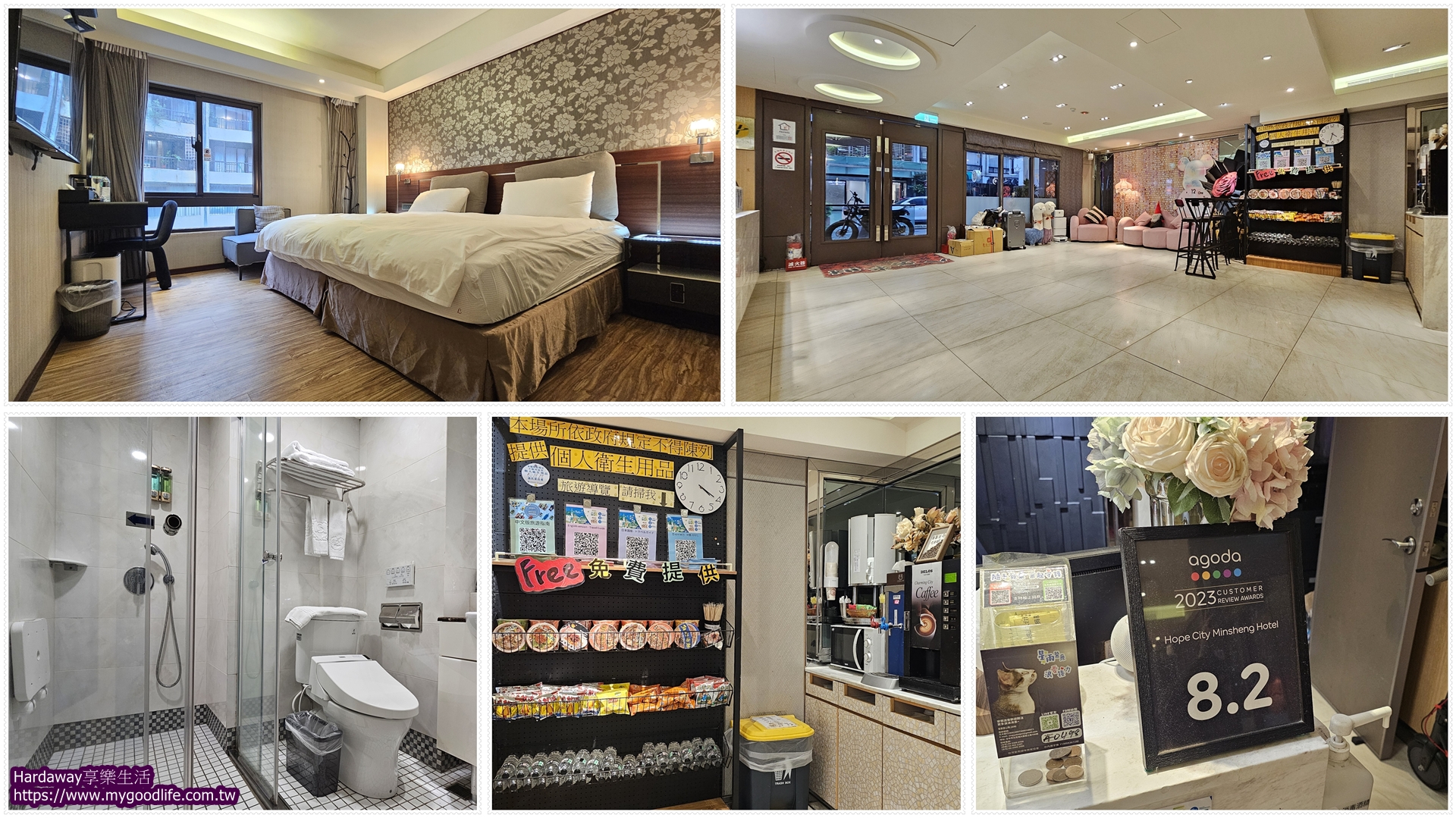 要到櫃臺check in時,有看到這間台北松山平價旅館曾獲得2023 Agoda住宿評鑑獲得8.2分小立牌,代表豪城商旅民生館有不錯的住宿口碑。